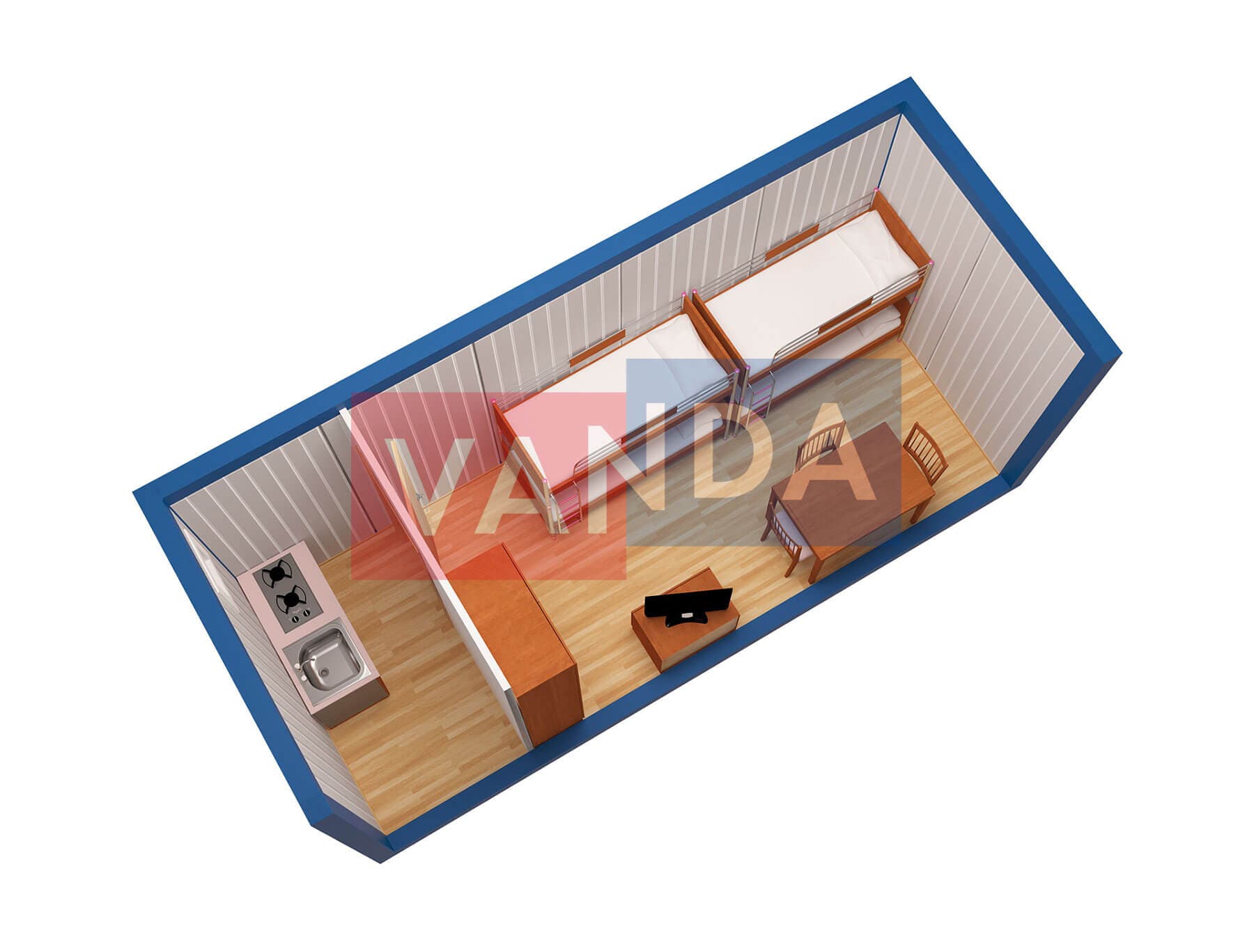 Металлическая бытовка с кухней в тамбуре 5,85 x 2,4 - Вагонка деревянная